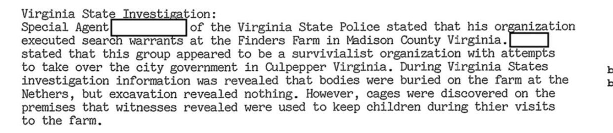 7. "Cages were discovered on the premises that witnesses revealed were used to keep children during their visits to the farm." https://t.co/xvA2YuQ1bT