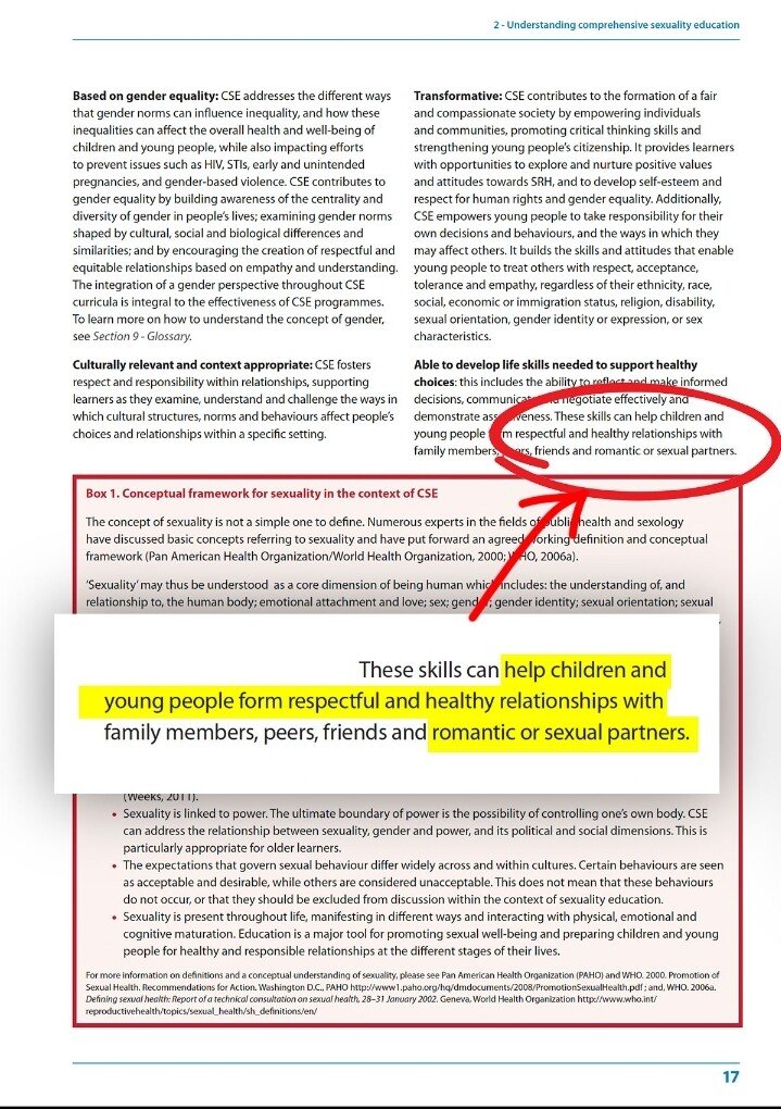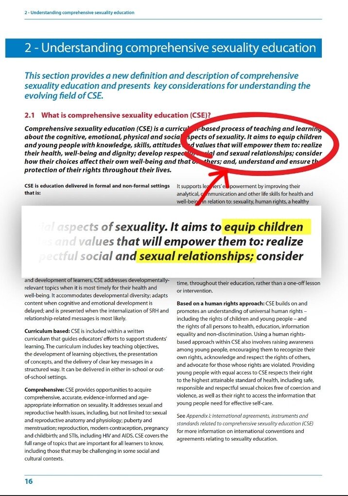 11) The next document is issued by the UN & is titled International Technical Guidance on Sexual Education. It is the official guideline for elementary schools around the world. The goal of this doc is described on page 16: it aims to equip children to have sexual relationships.