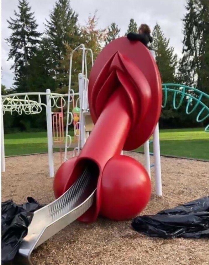 34) The sexualization of little children is also happening outside of the schools. These are images of children's playgrounds which were approved by local governments and schools.