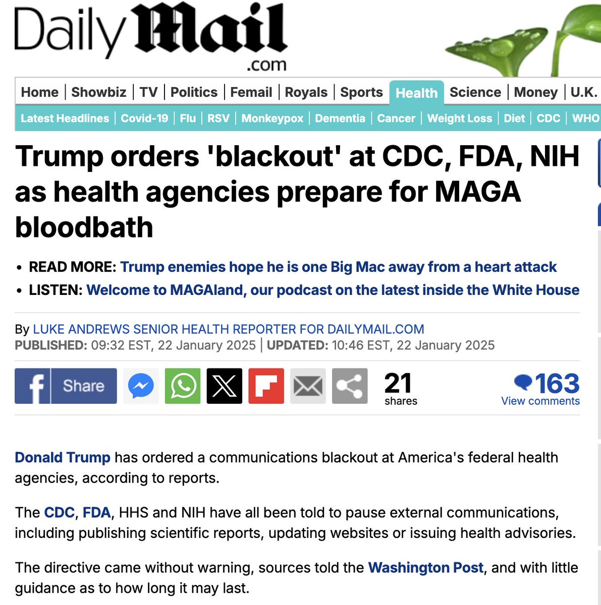 It means that Donald Trump was likely made aware that the FDA, CDC or NIH were planning to sabotage him by making several quick announcements. The CDC was probably going to issue a health scare... or something of the sort... By issuing this order, Trump most likely sabotaged all that.