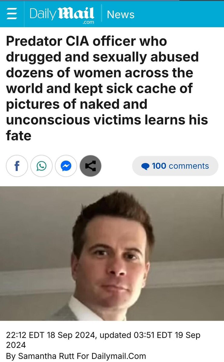 The CIA doesn't like news about their rapist. Don't talk about the CIA rapist. This guy roamed around raping women and amassing a sick cache of demented trophy photos. Nearly 525 videos and photographs of naked, unconscious women - including many in which he can be seen opening their eyelids, groping or straddling them. He needs to be locked up for life!!