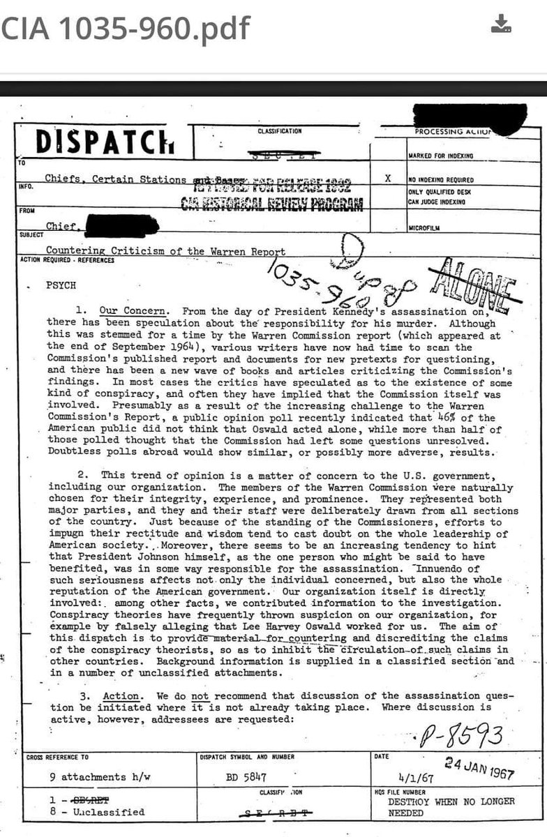 This is an old CIA memo from 1967 to all bureau chiefs around the world. This memo is the SOURCE of the phrase “conspiracy theorist.” After the Warren commission published its conclusions about Kennedy’s assassin, books were published casting doubt about the reports conclusions. The CIA instructed its agents to quash all debate by labeling anyone asking questions as conspiracy theorists. What was the CIA so afraid of? What’s wrong with questions and debate? What were they trying to hide? Why is it that anyone who questions the nature of COVID-19, potential treatments, and concerns about vaccines is labeled a conspiracy theorist?
