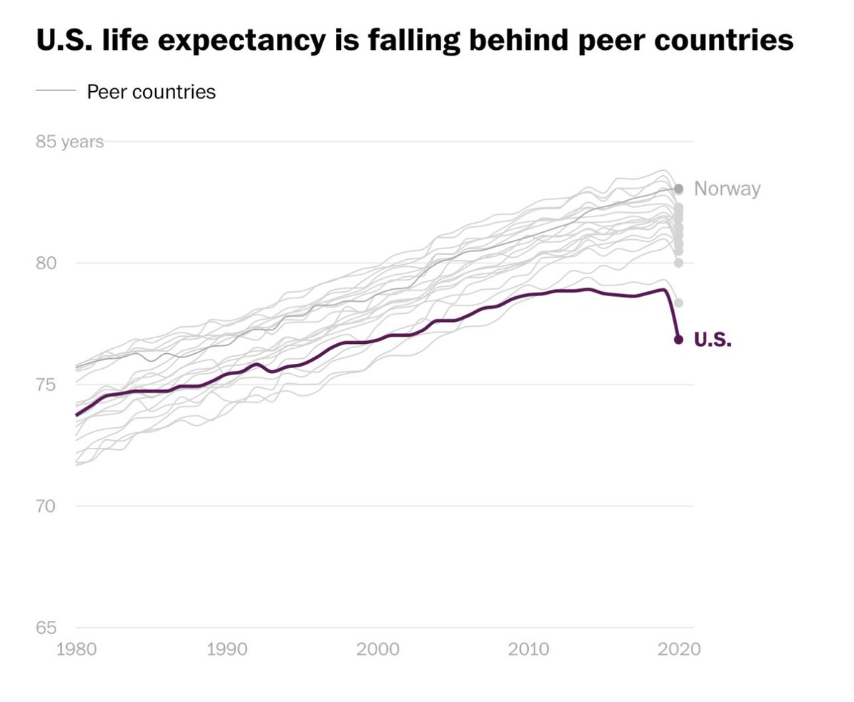 AMERICA 2.0 A quick response to @ramahluwalia and @Noahpinion’s posts. First, it’s not “fashionable” to predict the decline of the US. It’s both (a) extremely non-consensus and (b) tragic for everyone that remembers the functional version of an incredible country. Second, it’s not really a prediction, but an observation. We could paste graph after graph of the declines in life expectancy, manufacturing dominance, internal cohesion, or share of global trade. But the long term trend is down. Third, it’s sadly not the “United States”, it’s the Disunited States. Just like “Korean” became North Korean and South Korean, so too is “American” becoming Blue American and Red American. Look at the graphs; the 70+ year trendline of rising political polarization only ends in something like American Partition. Fourth, to see the decline you just need to walk around America’s blue cities and compare them to Asia’s. The public sector has failed in a way that’s not immediately visible in stock prices, until CVS and Starbucks must exit blue governance. Fifth, US banks are on death row. They have trillions in unrealized bond losses and exist at the sufferance of the Fed. Fitch wants to downgrade even JPMC. Sixth, yeah, tech is a bright spot but it’s not in control of the state — only the network. The state belongs to blue America, and it is fighting tech in every possible way, from AI to self-driving to crypto. Seventh, all this has nothing to do with what one wants. In my view, what’s ascending are the Internet, India, and China. What’s descending is DC. I’m happy that the Internet and India are ascending. I’m happy for the Chinese people but concerned about the ascendance of the CCP. And I’m concerned for the American people and worried about the very visible decline of DC. I do think that after decades of Iraq and Syria, financial crisis and coronavirus, inflation and deindustrialization, that the DC regime has lost the Mandate of Heaven. They inherited a hyperpower in 1991 and squandered perhaps the largest advantage in human history in just 30 years. The final blow is yet to be seen, whether it’s delivered by the bond market or warfare or political conflict or something else. But like Dalio, I think a Soviet-style collapse is coming. It could be gradual, but these days things have a way of coming in sudden spurts. Fortunately, the Internet may give us a way to reboot after the fall. Not through “Western Values” (which have been too deconstructed and compromised by this regime) but through Internet Values. On that basis one could rebuild an America 2.0…