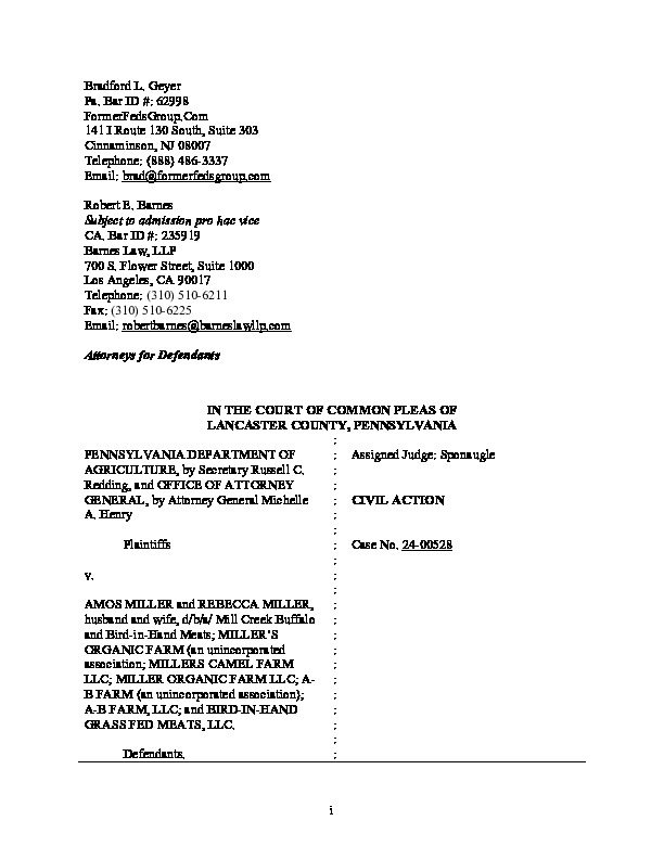 Let me explain what the #AmosMiller case is about after a court conference. The @PAAgriculture claims ALL food is "illegal" -- as illegal as illegal drugs -- unless it was made by a government-approved facility, and they can destroy it at will. See brief: https://vivabarneslaw.locals.com/post/5309392/amos-miller-defense-brief