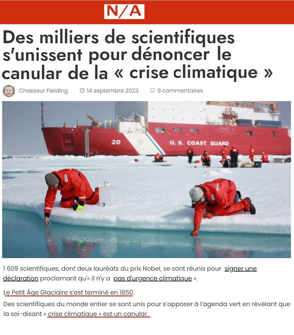 1609 scientifiques proclament qu'il n'y a pas d'urgence climatique. Cette crise est un «canular». https://tinyurl.com/46rtj6dx « Le Petit âge glaciaire s'est terminé en 1850. » *1850 est l'année de référence des alarmistes à partir de laquelle les températures ont commencé à