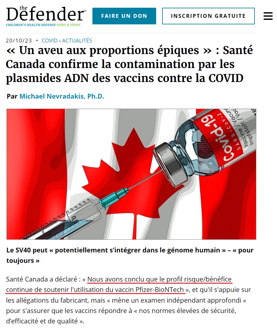 La contamination par l'ADN comprend le SV40 que Pfizer n'a pas divulgué et qui, selon certains experts, constitue un RISQUE de CANCER en raison de son INTÉGRATION potentielle avec le GÉNOME HUMAIN. https://tinyurl.com/e7z3h7u5 ▶️ Malgré tout, le profil risque/bénéfice l'emporte. 😬