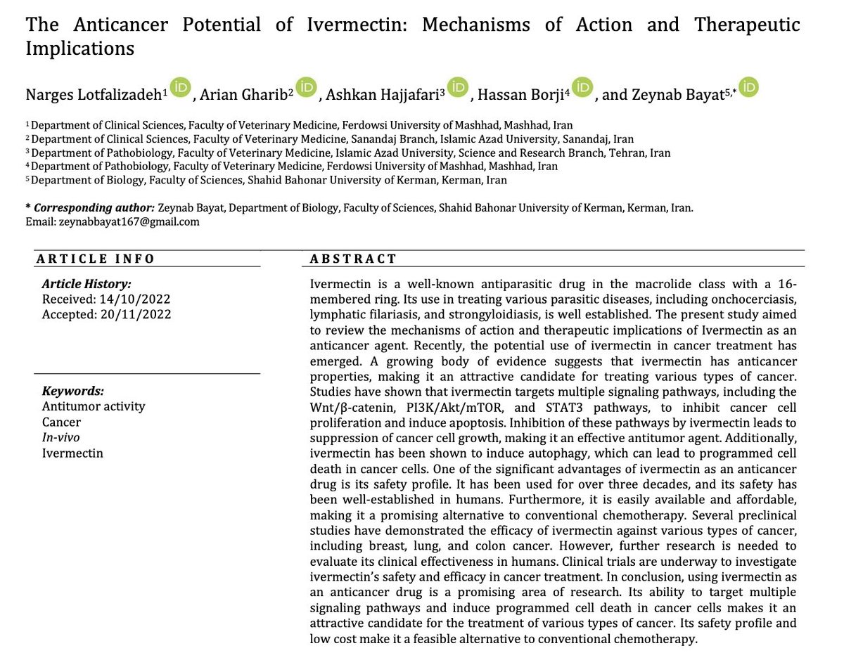 Ivermectin has at least 15 anti-cancer mechanisms of action (apoptosis, autophagy, pyroptosis, etc.) Let me explain the above-mentioned ↓
