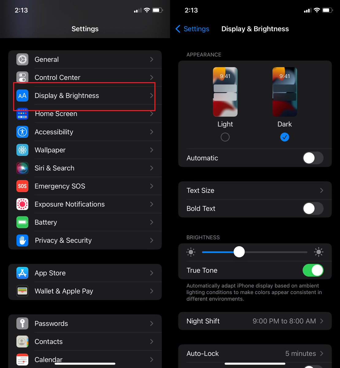 11) Switch light mode to dark mode We all know blue light can disrupt our circadian rhythm, melatonin production, and overall sleep quality. Dark mode is a no-brainer. Your phone will become less interesting and you will not spend as much time online, chasing cheap dopamine.