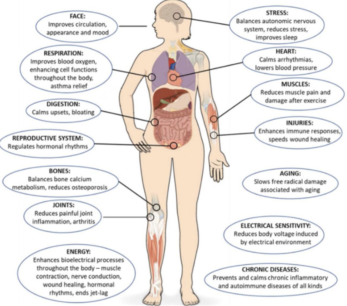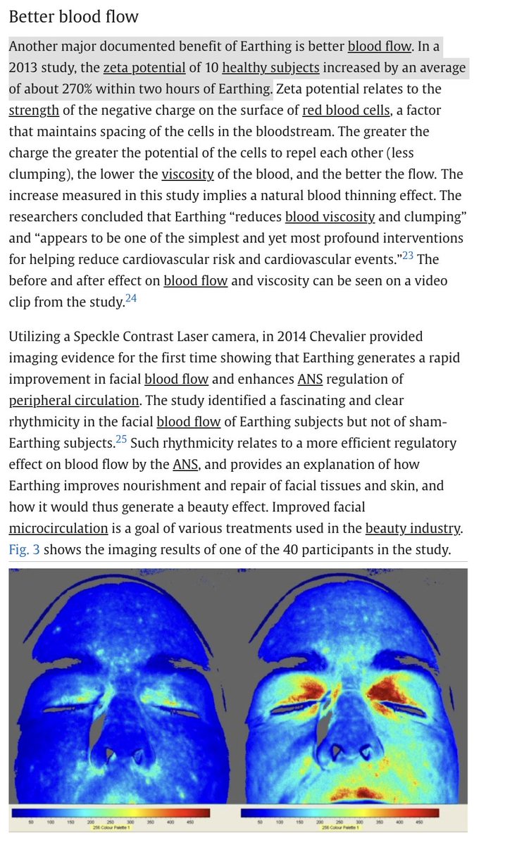 The research on grounding over the past two decades is impressive: • Reduces chronic inflammation • Improves blood flow (by 270% in some studies) • Normalises cortisol levels • Enhances wound healing • Improves sleep quality • Relieves pain (often rapidly) Other studies have documented: • Faster muscle recovery after exercise (documented in multiple sports medicine studies) • Reduced blood viscosity (thinner, healthier blood that flows better) • Improved facial blood flow (creating a natural "beauty effect") • Enhanced lymphatic return to the heart Your entire circulatory system works better when grounded. All without pills, needles, or side effects.