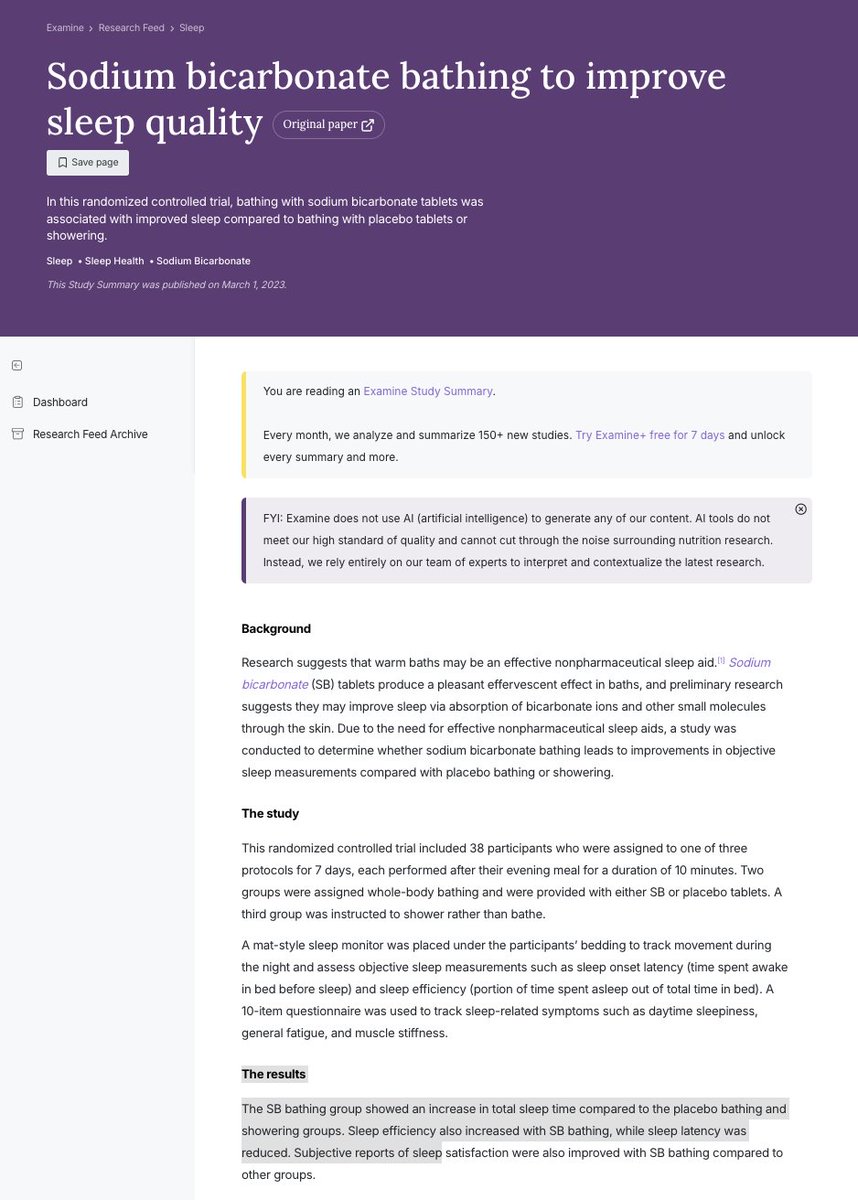→ Improves sleep quality Studies on bicarbonate baths (1g/L of water) demonstrate: • Faster onset of sleep • Increased sleep duration • Improved sleep efficiency Neutralising acidity enhances relaxation and reduces hormonal disturbances that disrupt sleep ↓
