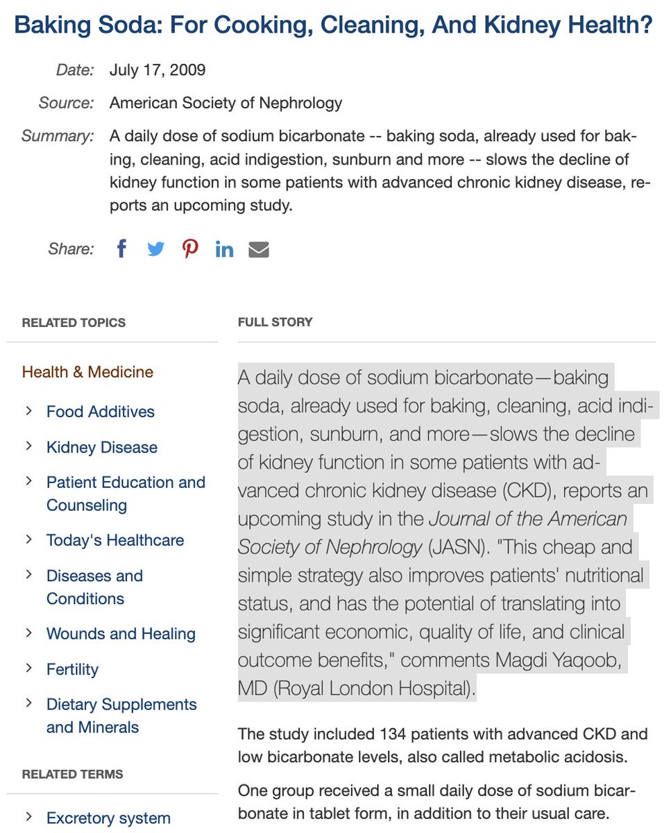 → It slows the decline of kidney function Kidney disease can lead to blood becoming too acidic (metabolic acidosis) when kidneys can't filter properly. This is why baking soda is powerful—it neutralises excess acid in your blood, just like it does for heartburn.