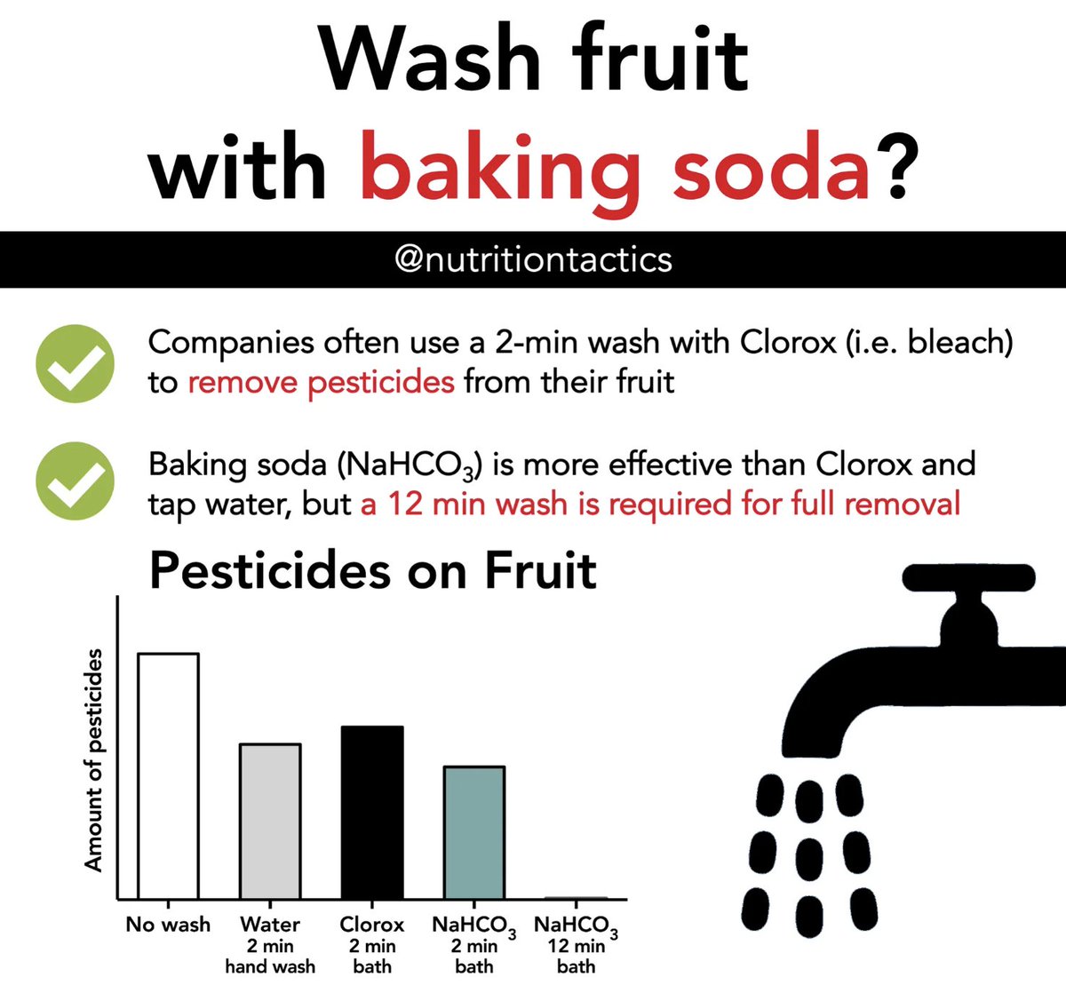 → It degrades pesticides on your vegetables Baking soda is the most effective method of removing pesticides from veggies. If you can’t buy truly organic—soak veggies in baking soda for 12 mins and rinse them of to remove all the chemicals.
