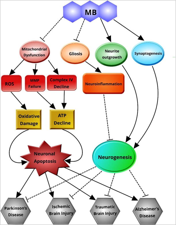 5) MB as Anti-Depressant MB works as a monoamine oxidase inhibitor (MAOI), increasing serotonin, norepinephrine, and dopamine levels. Plus, it reduces brain inflammation. Clinical research shows 15mg/day significantly improved depression symptoms compared to placebo in a controlled trial.