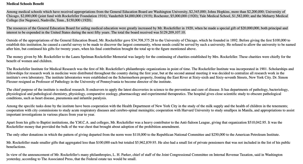He hired Abraham Flexner to submit a report to Congress in 1910. This report "concluded" that there were too many doctors and medical schools in America, and that all the natural healing modalities that had existed for hundreds or thousands of years were unscientific quackery AND THEY SHOULD BE LABELLED “ALTERNATIVE.”