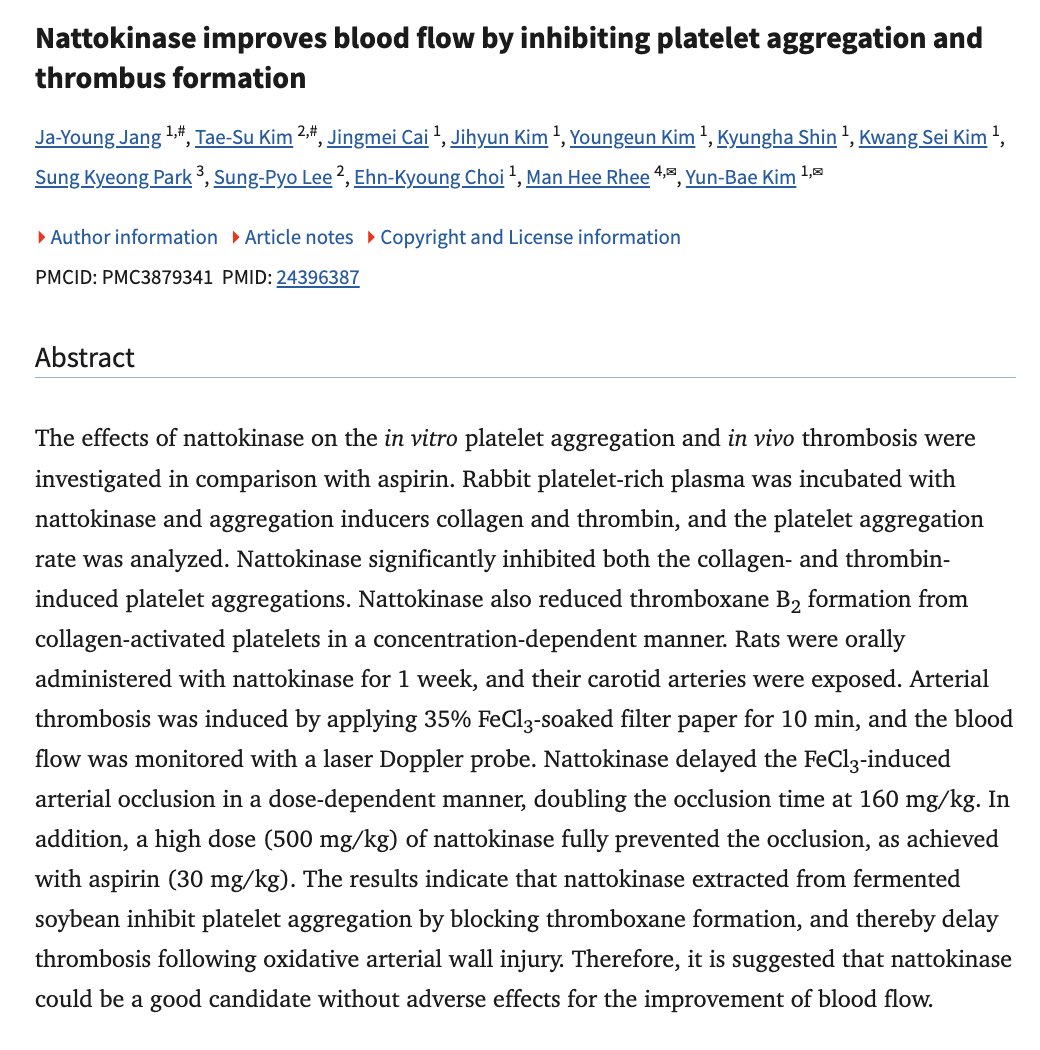 1) NK = super-powered clot buster It is 4x stronger than plasmin (your body’s natural clot-dissolver). A single 2000 FU dose breaks down blood clots by targeting (fibrin) the protein that forms clots, and helps prevent new clots from forming in both arteries and veins. https://t.co/LqRSyfmn1k