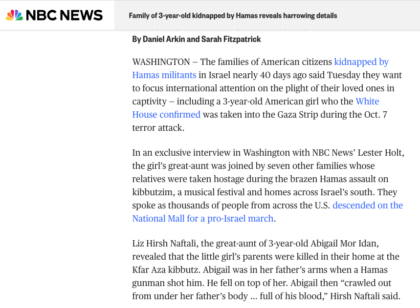 11/26/23: Biden asserts he wants four-day pause in Israel-Hamas war to extend https://www.i24news.tv/en/news/israel-at-war/1701019872-biden-says-he-wants-the-truce-in-gaza-to-continue-past-original-four-days That same day, the British Daily Express reports that Israel’s Shabak knows where “many” of the then-240 hostages were located, but did not rescue them due to the threat of collateral damage – which according to @CarolineGlick would “risk U.S. resupply, which Israel cannot fight without” https://www.jns.org/biden-is-the-primary-obstacle-to-israeli-victory/