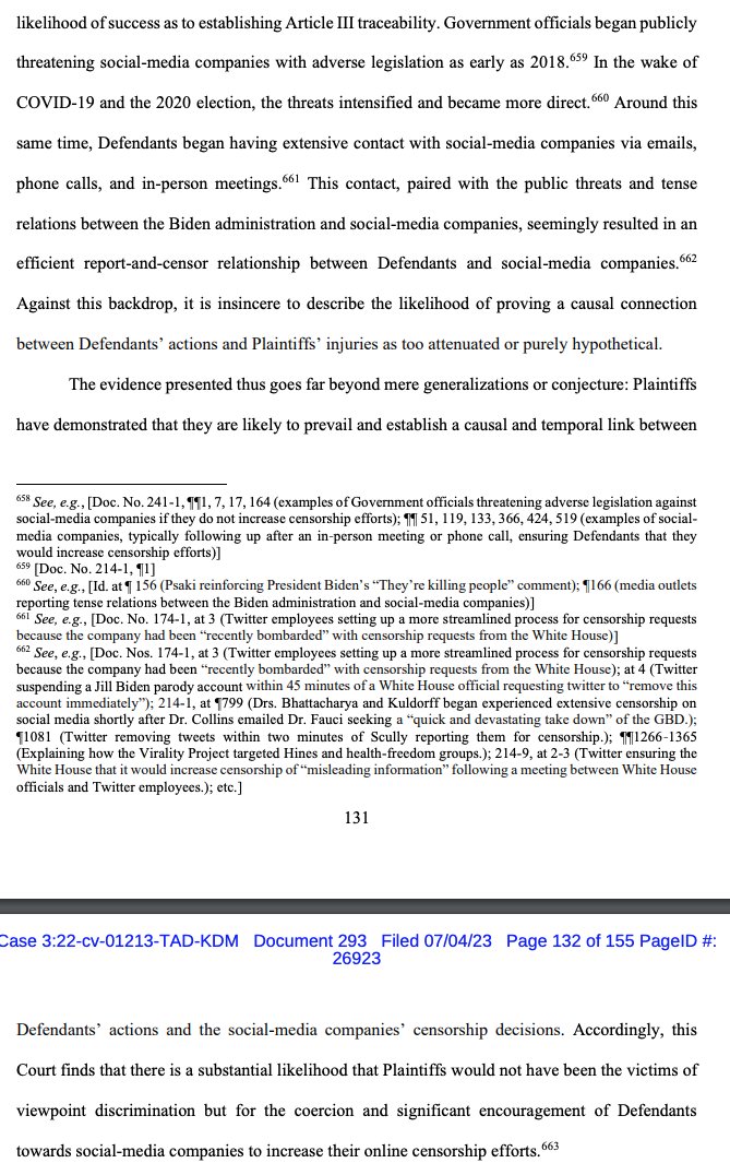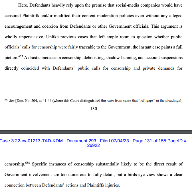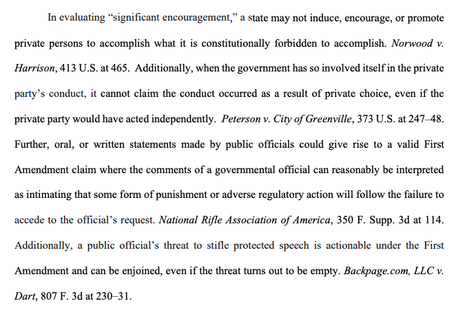 Note again the government lamenting that the real problem here is that we the public might engage in a "sprawling audit" of its efforts to chide, cajole, and coerce social media platforms to silence us. Imagine applying this "anti-sprawling audit" standard to, say, Donald Trump https://t.co/BHrmk21hso