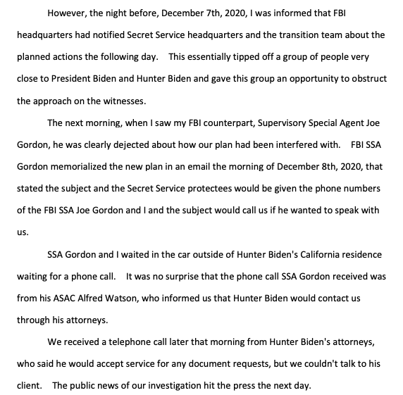 Sept. 2020: The "FBI case agent in Delaware had only recently moved back to his hometown of Wilmington with his wife and family and was concerned about the consequences for him and his family if they conducted...sensitive interviews and executed a search warrant of the President…