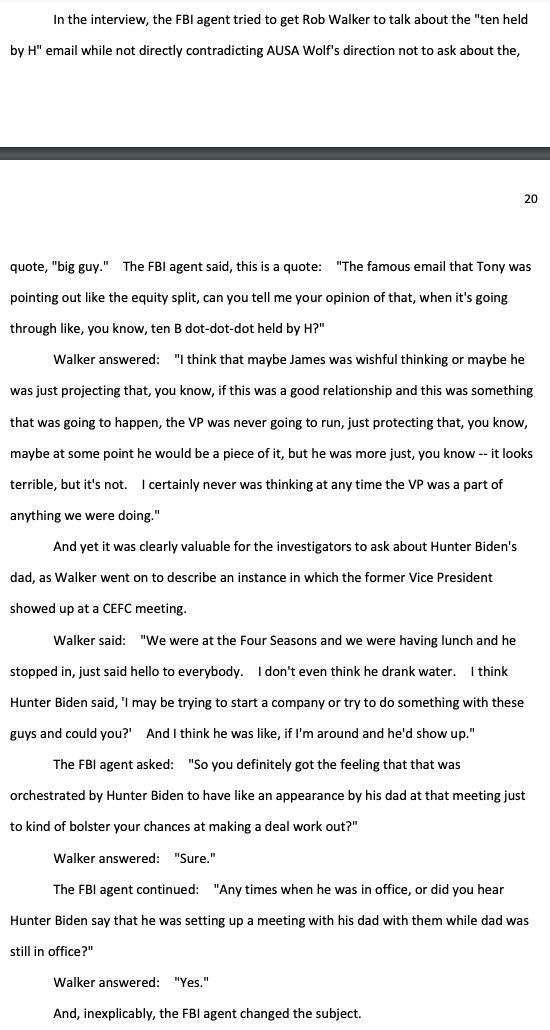 Rob Walker played down the whole "10% for the big guy" line, but then provided an account of Joe literally walking in on Hunter's China business -- in seemingly coordinated fashion to help him win said business. FBI agent then "inexplicably...changed the subject"