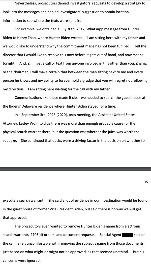 An Assistant US Attorney "said a lot of evidence in our investigation would be found in the guest house of former Vice President Biden, but said there is no way we will get that approved." This after Shapley unleashed evidence indicating Joe's involvement in Hunter's China "biz"