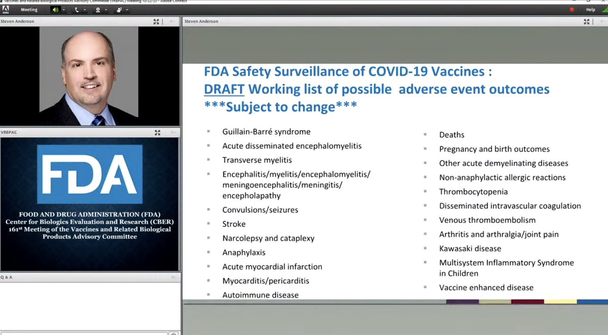 Quickest slide ever. VRBPAC meeting 10/22/2020, prep to launch injections. Steve Anderson, FDA/CBER Dir. of Biostatistics & Epidemiology. Screen cap of critical slide 16. Video clip starts at slide 15. Watch as he asks for slide 17, slide 16 flashes by. https://youtube.com/watch?v=1XTiL9rUpkg&t=9210s… 1/