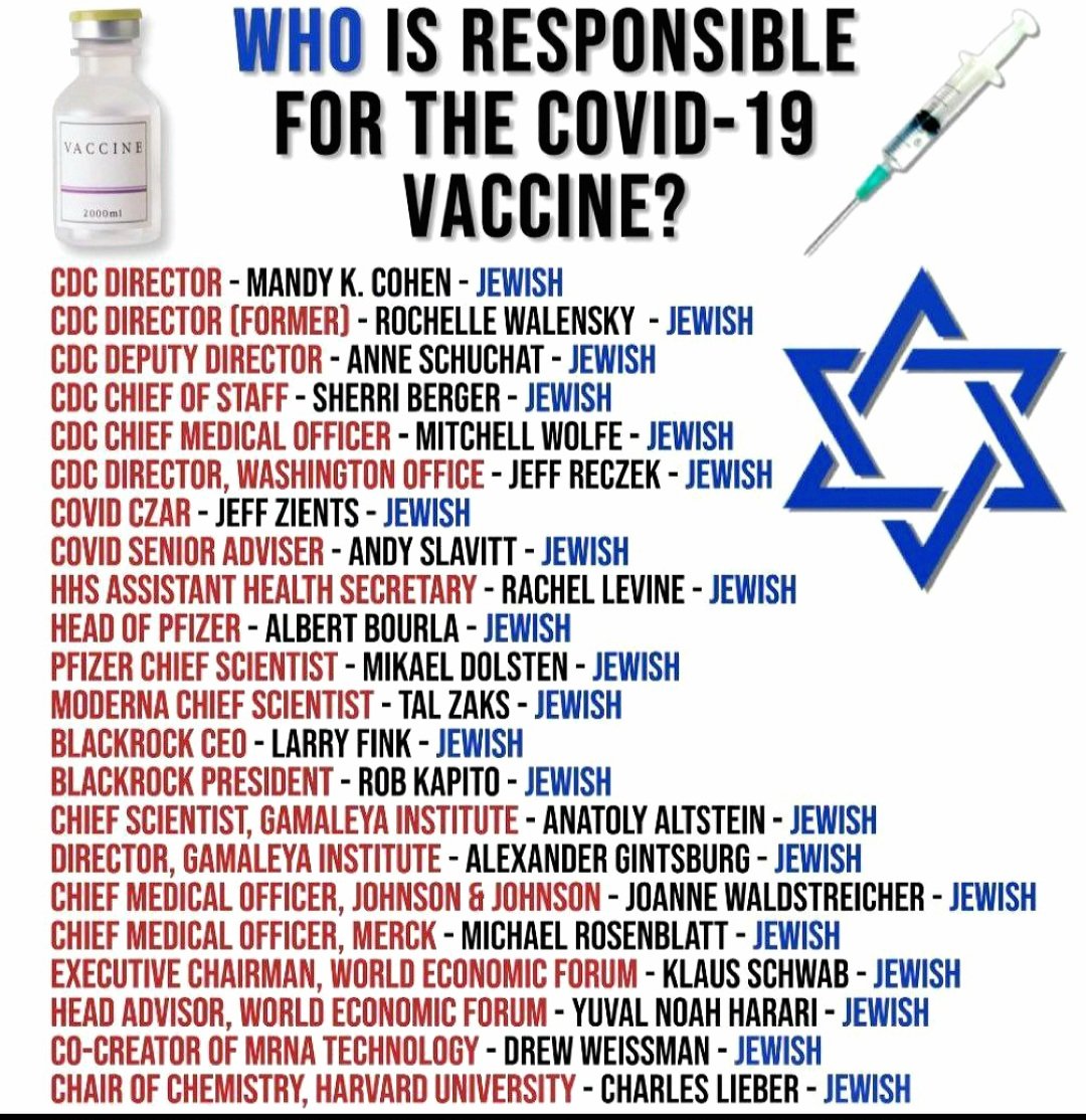 Les responsables des vaccins Covid sont tous juifs ✡️ et comme par hasard, voici un extrait du TALMUD ⬇️ Talmud, Zohar II, 64b : Le taux de naissance des goyim doit être diminué matériellement. #ZionismIsNotJudaism #Talmud #ZionistPropagandaMachine #IsraHell https://t.co/1qfPurMuac