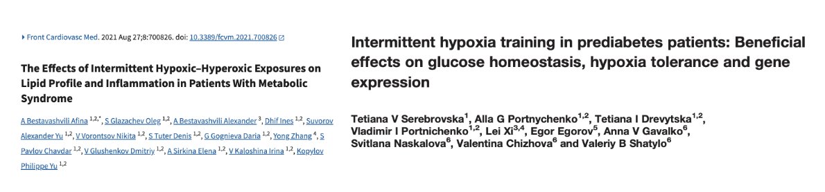 4/ Here is some of the clinical evidence supporting HIIT role as a longevity and performance boosting intervention Performance and recovery Enhanced recovery in over-trained endurance athletes A study involving 15 endurance athletes diagnosed with overtraining syndrome. IHHT protocol: Three weekly sessions for a duration of four weeks. Each session consisted of 6-8 cycles of 10% hypoxia and 30% hyperoxia. Key findings Improved Exercise Performance: Participants showed a 12% increase in maximum wattage. Enhanced Recovery: Recovery was significantly improved, as indicated by a 4.7-fold decrease in the sympathetic/parasympathetic index (LF/HF). Blood Markers: No changes were observed in blood markers such as red blood cell count or hemoglobin levels.