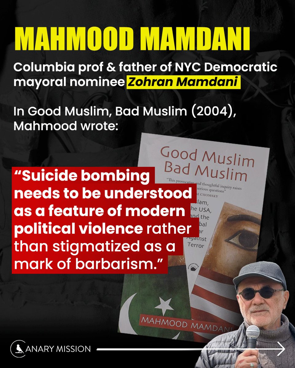 Mahmood Mamdani — Columbia professor & father of NYC Democratic mayoral nominee Zohran Mamdani — wrote: “Suicide bombing needs to be understood as a feature of modern political violence rather than stigmatized as a mark of barbarism.” https://t.co/2eScJvlG3B