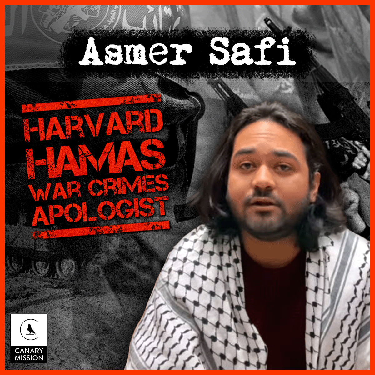 🔴 Asmer Safi is an activist with 3 student groups @Harvard that signed a statement blaming Israel for Hamas' massacre of Israelis on Oct. 7: @Harvard, the South Asians for Forward-Thinking Advocacy and Research, Pakistan Students Association & Harvard Pakistan Forum. https://canarymission.org/individual/Asmer_Safi