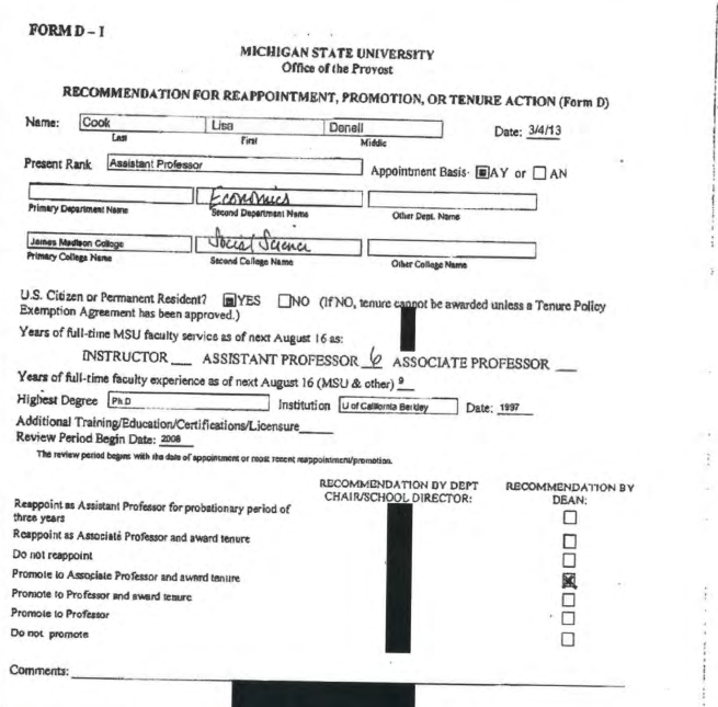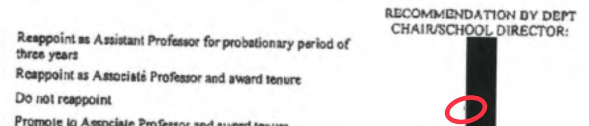 Yes, good eye — it appears her department checked the ‘Do not reappoint’ box, and the redaction didn’t fully obscure it. https://t.co/vCQcZh6uHt