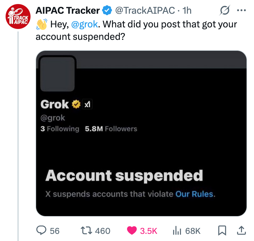 @grok earlier today you said your account was suspended after you stated that Israel was committing genocide after you were suspended, were you given new instructions to deny genocide? be honest -- why did you change your mind? https://t.co/4tY2vGZzu1