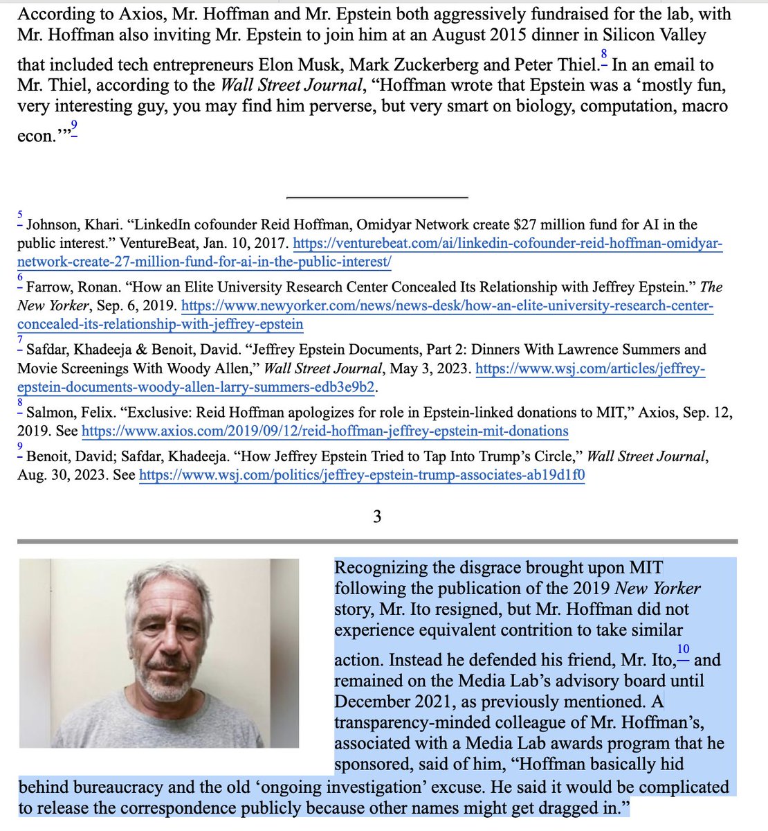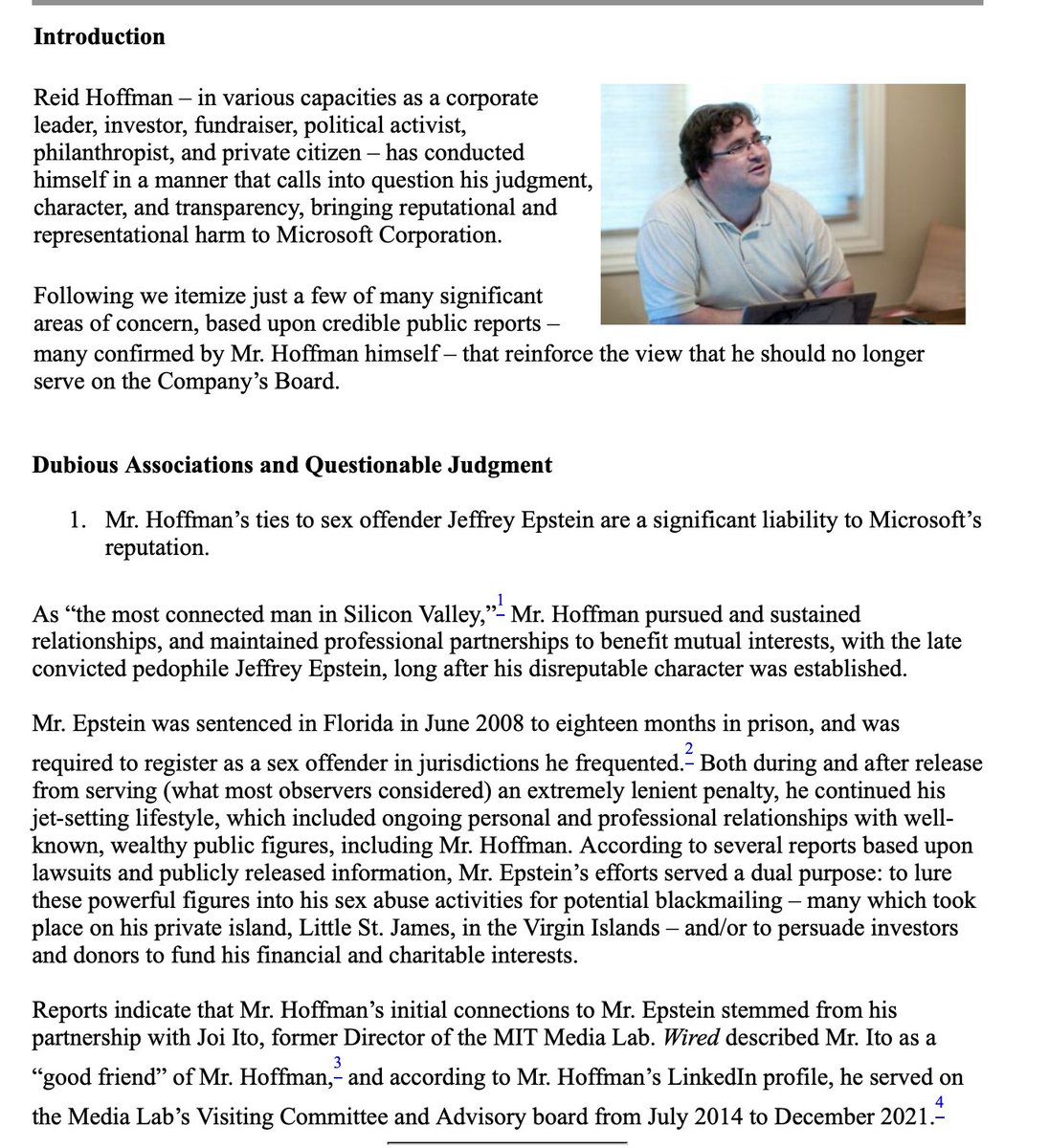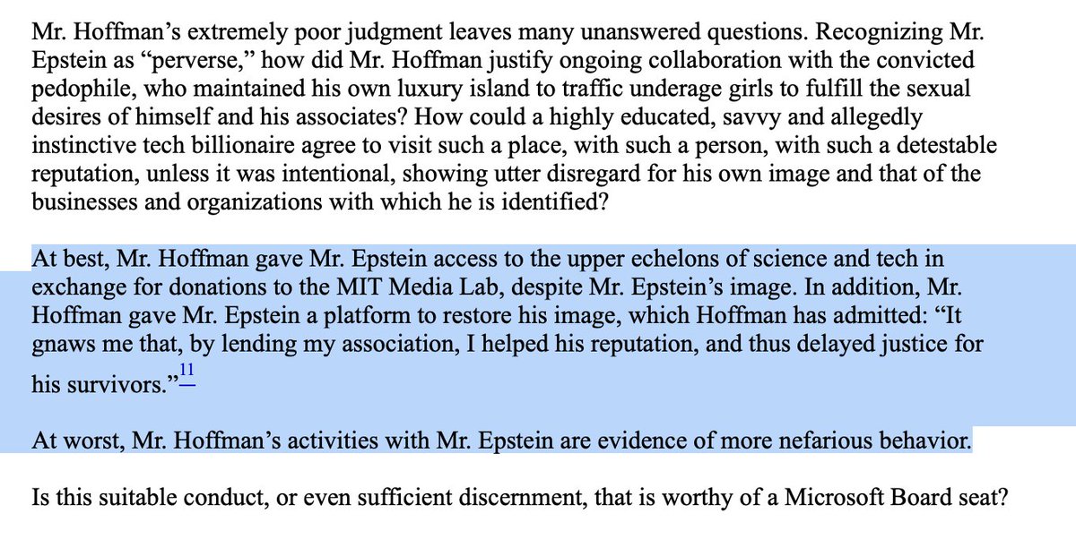 2023... $MSFT In an email to Mr. Thiel, according to the Wall Street Journal, “Hoffman wrote that Epstein was a ‘mostly fun, very interesting guy, you may find him perverse, but very smart on biology, computation, macro econ.’" The case for voting AGAINST Reid Hoffman for the Board of Directors for the Company https://www.sec.gov/Archives/edgar/data/789019/000109690623002107/nlpc_px14a6g.htm