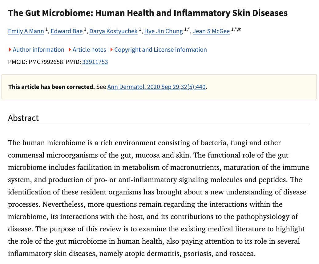 Dermatologists have it all wrong. Acne, psoriasis, and eczema ARE NOT skin issues; they are gut issues manifesting on your skin. We've been treating our skin problems backwards for years. The science of gut-skin connection (and how to fix it): 🧵
