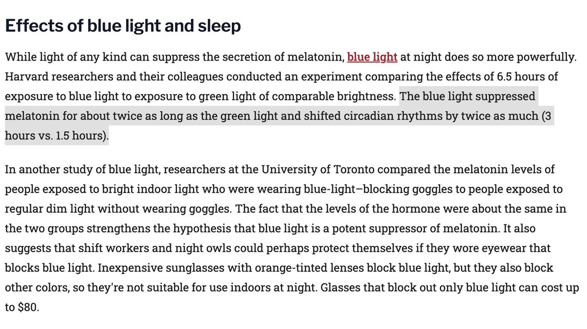 Blue light blocking solutions that actually work: • Amber glasses after sunset • Incandescent bulbs for evening light • Stop screentime 1-2 hours before bed • Blackout bedroom https://t.co/kWld7Dnt0x