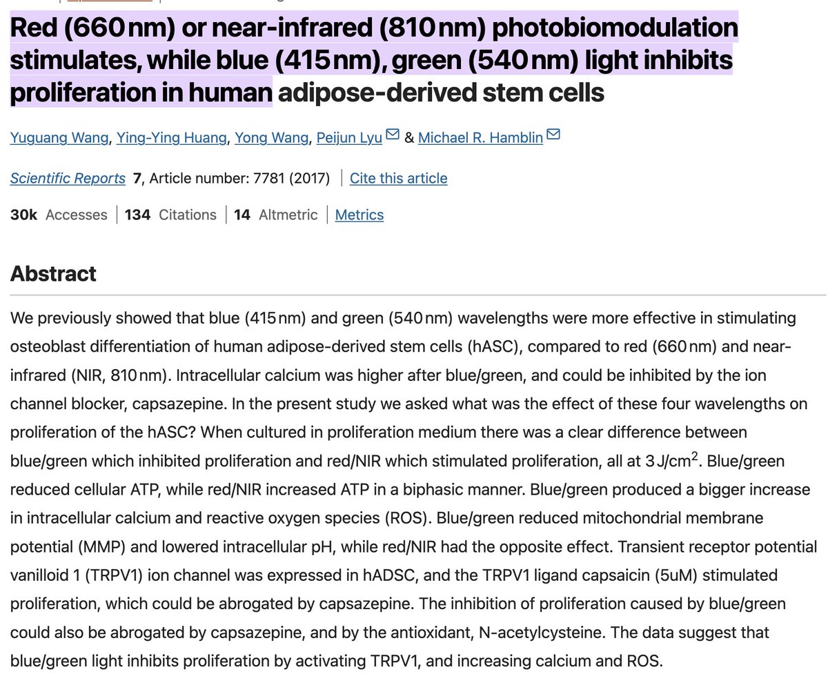 → Near-infrared light (810-940nm) penetrates even deeper, reducing inflammation and releasing nitric oxide to improve circulation. Research shows it stimulates stem cell production, while blue light actually inhibits it. Your cells literally grow better under red light. https://t.co/935lfbFCXq