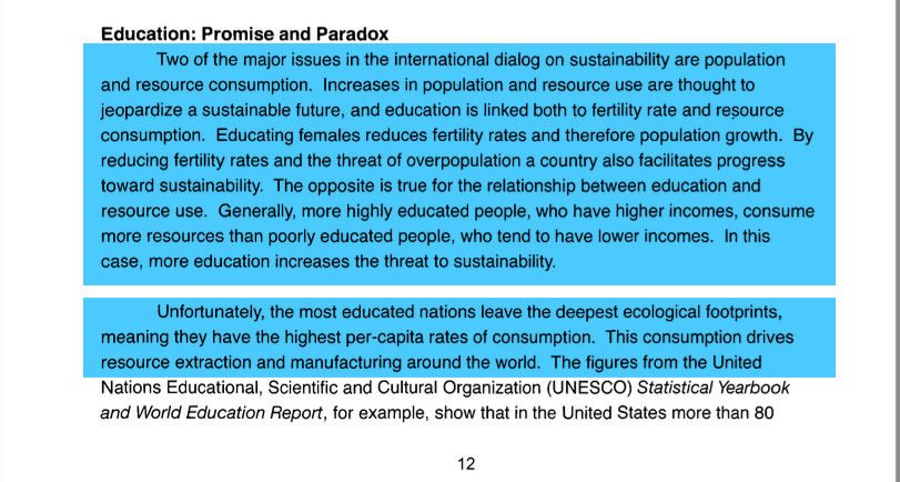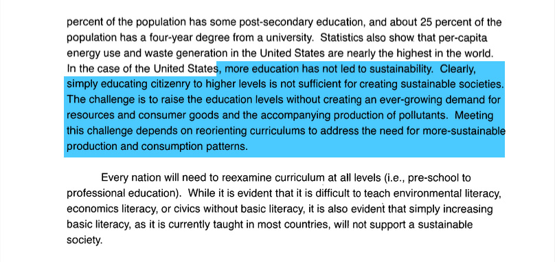 4/ History Bits #3: UNESCO believes highly educated people consume too much and THAT is unsustainable. In 2014, they released this: The United Nations Education for Sustainable Development. https://x.com/cravecreative/status/1751985441119580505?s=20