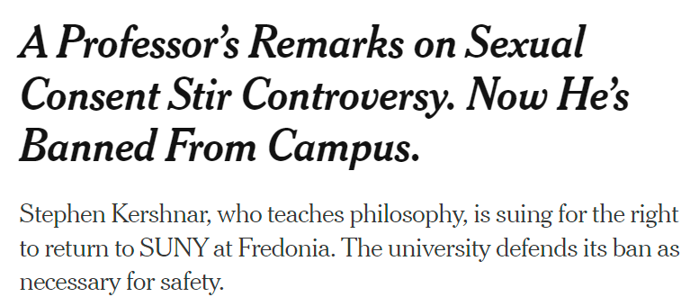So why is Stephen Kershnar being kicked off campus? The campus police chief claimed—rightly or wrongly—that his presence was a danger to others. You know who might be willing to argue this case? Stephen Kershnar. https://t.co/v2892Jc0i9