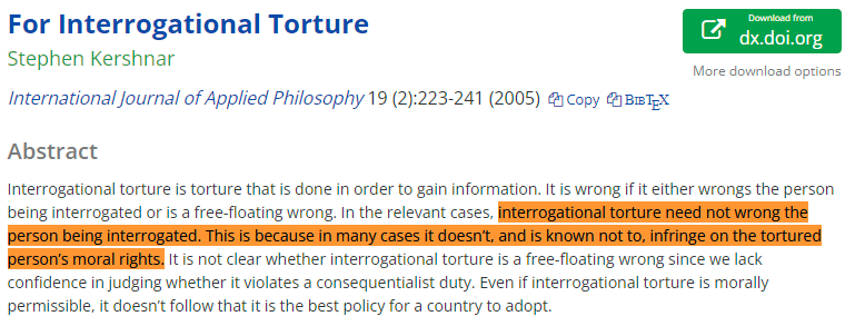 Should we torture people during interrogation? He argues that it's not morally impermissible. There are many scenarios in which it's fine, but this ultimately hinges on whether it works. https://t.co/7XMr61Frg4