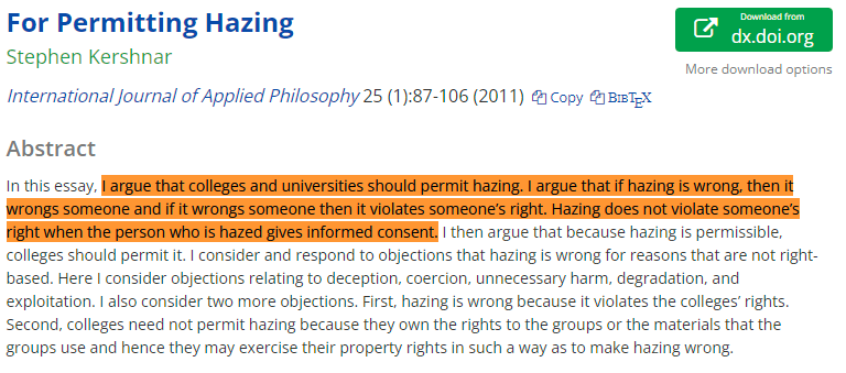 Many colleges have taken a turn against hazing and sought to ban the practice. He argues that, since hazing involves informed consent, they should permit it. https://t.co/Rc9fQnTVoe
