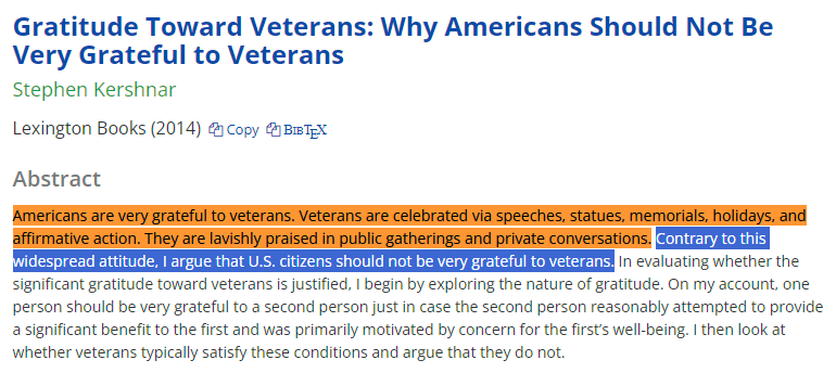 He's also argued that it's not exactly clear why Americans are grateful to veterans and, in fact, they shouldn't be! https://t.co/Rjpfa4tVvC