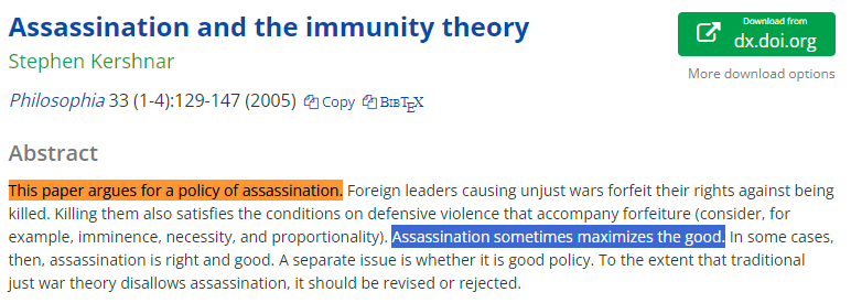 He has also argued for a policy of killing people. Specifically, killing bad people. "Just War" theory may say assassination is bad, but, Stephen argues, that needs to change. https://t.co/Pgv0VEsBeq