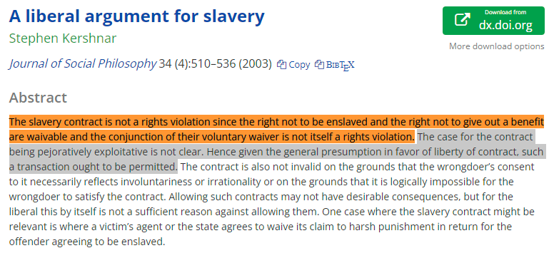 He's willing to say the things that no one else will, like that slavery is OK and it's not clear why it isn't, speaking as a liberal. https://t.co/BoADEtwFSE