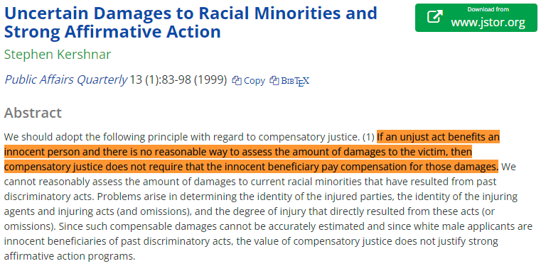 One of the arguments for affirmative action is that it promotes experiential diversity on college campuses. But, he argues, this is probably not justifiable, and the idea that minority beliefs will rub off on majorities doesn't even seem relevant. https://t.co/aAr0I0fyOm