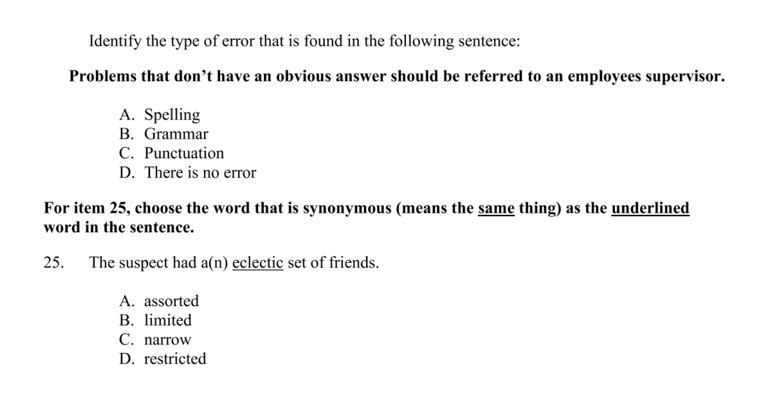 Question 18 also asks you to identify a spelling error. This can be a hard one! https://t.co/k9AvtZ8BvF