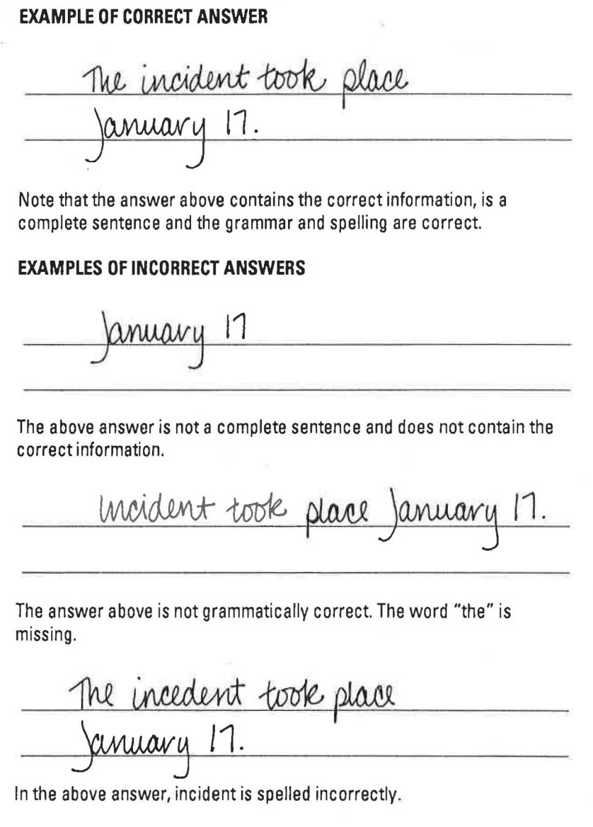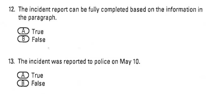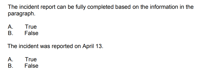 For the final section, you're asked to fill out incident report forms correctly. This is the example you're given: