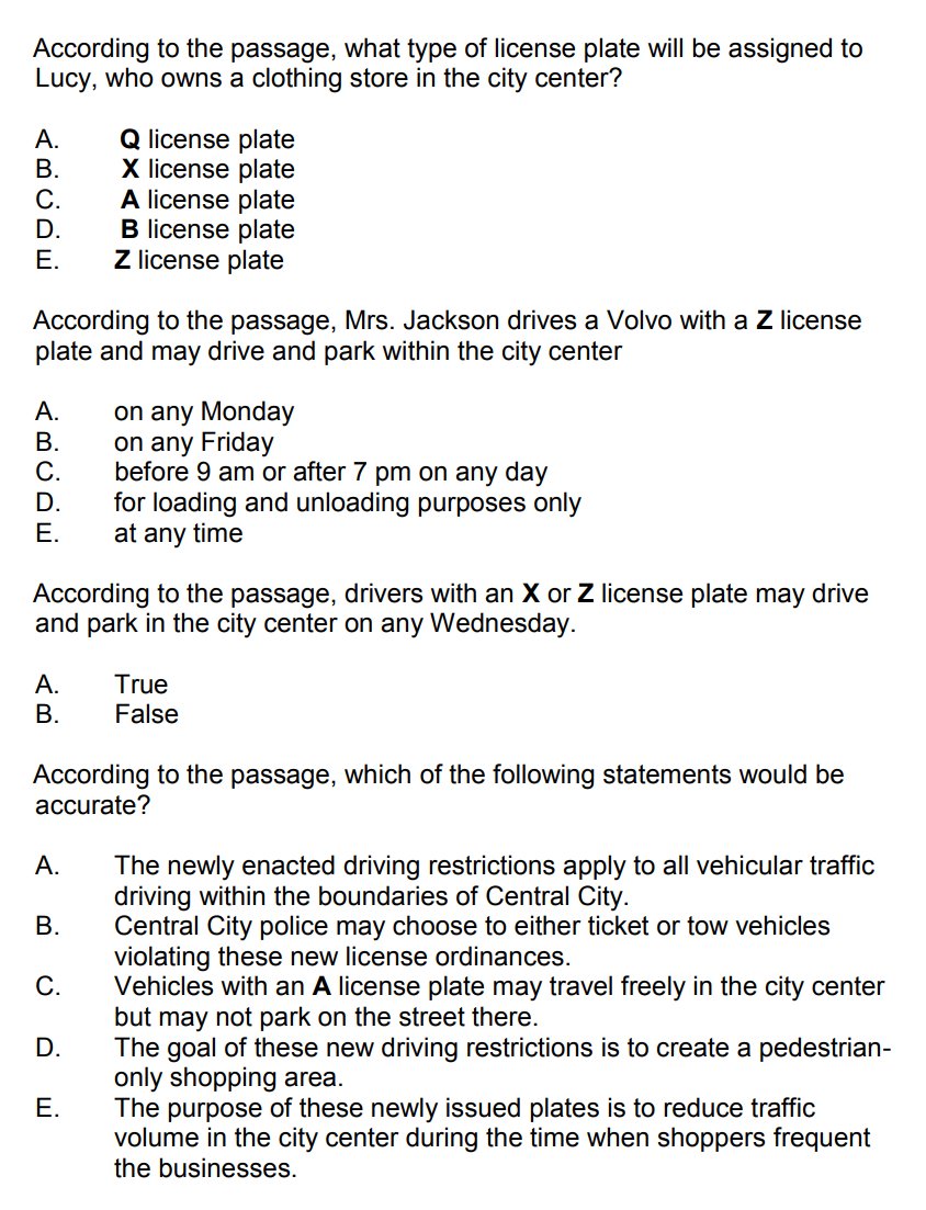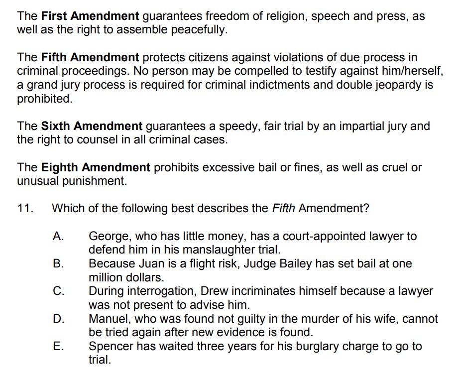 Now we're going to transition from the mathematics section to reading comprehension. Before getting to the questions, read this paragraph. You'll need it for questions 6 through 10: https://t.co/giTArpL83G