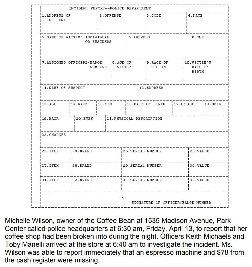 Here's a blank incident report and an associated paragraph. The next section is going to ask you whether you can fill this baby out given what you're told.