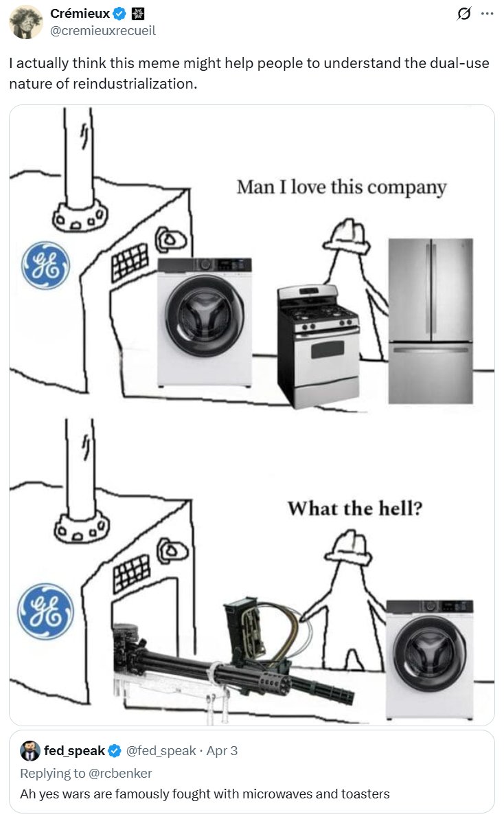 America does not do funding like this. Historically, if America wants rapidly, cheaply, and well-produced weapons, it relies on companies that primarily make consumer goods in times of peace. If the market won't support it, you won't be ready when war comes. https://t.co/yyOR6yVpte