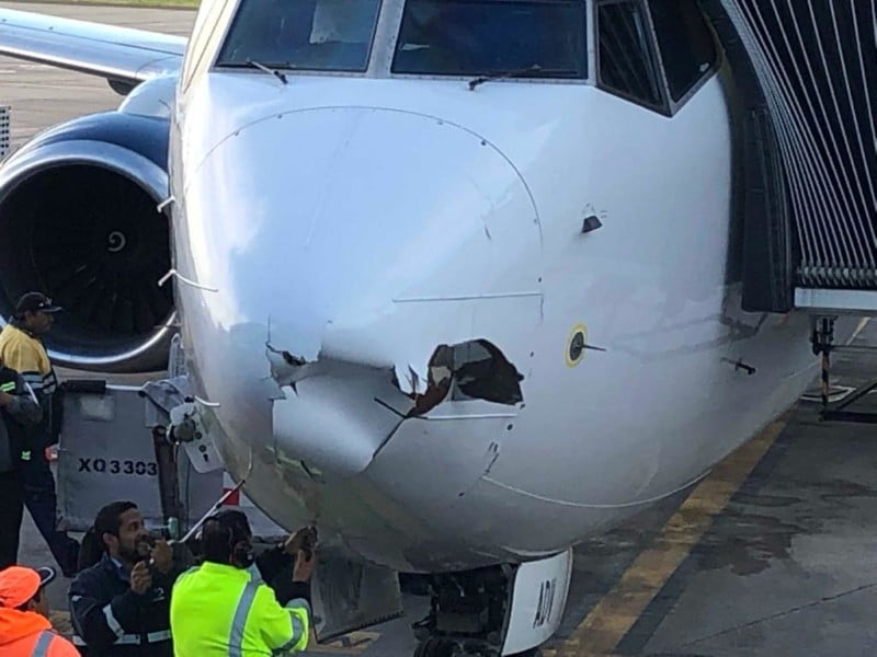 You might think: Wait, haven't drones been smashing into planes recently? How are they going to help? That's true! I've attached some pictures of drone-related damage. It's real and getting worse, I'll give you that. The answer lies in drone communication.