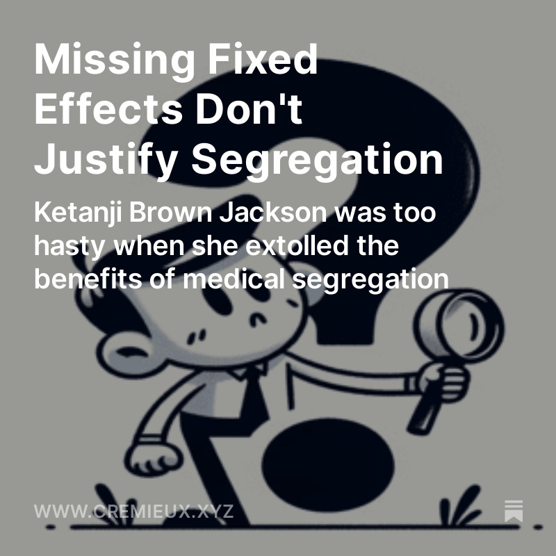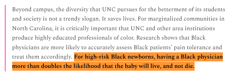 I have a pretty major update for one of my articles. It has to do with Justice Jackson's comment that when Black newborns are delivered by Black doctors, they're much more likely to survive, justifying racially discriminatory admissions. We now know she was wrong🧵